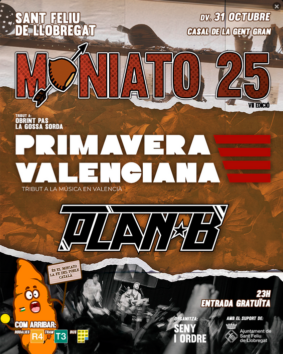 A les 23h serà el torn de PRIMAVERA VALENCIANA. Primavera Valenciana és un grup tribut a Obrint Pas i La Gossa Sorda. Format en 2024, aquest septet combina talent i passió per rendir tribut a les influències musicals que han marcat tota una generació amb una identitat musical col·lectiva sense precedents.