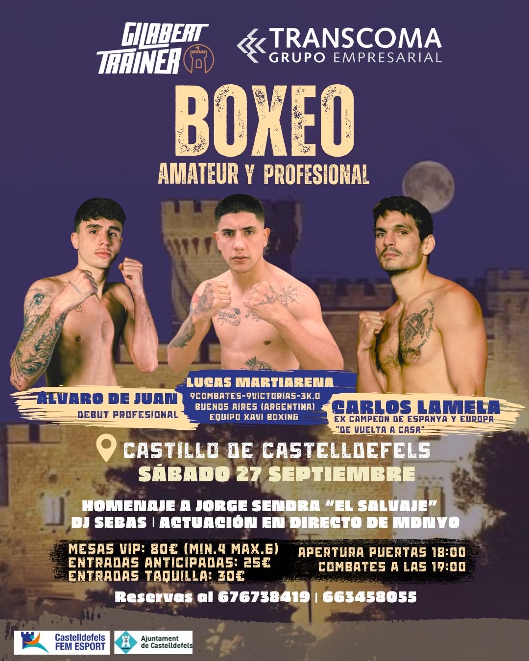 Vetllada de boxa de combats amateurs del millor de Catalunya i 3 combats professionals: una estrena de l'Álvaro de Juan del gimnàs Antarai, el combat de l'invicte Lucas Martiarena i el combat de l'ex campió d'Espanya i Europa Carlos Alberto Lámela. L'esdeveniment ofereix taules vip amb servei de catering, DJ i sobre tot bon ambient que la gent podrà gaudir.