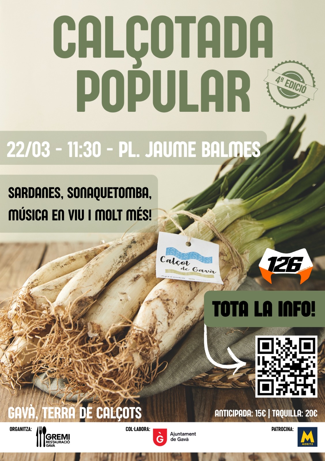 Una de les activitats més esperades, dins la Ruta del Calçot de Gavà, és la Calçotada Popular que es celebrarà el diumenge, 22 de març de 12 a 18:00 h, a la Plaça Jaume Balmes.