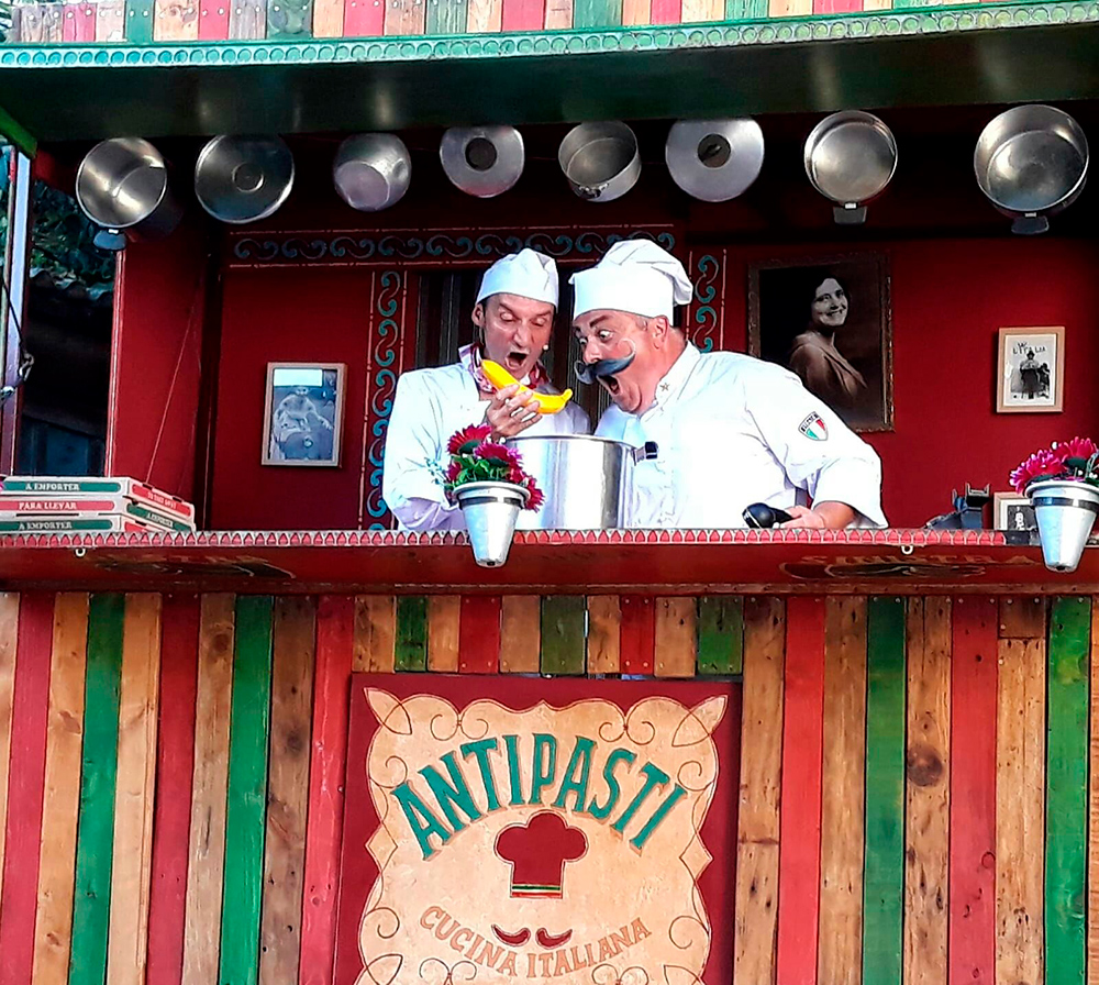 L’Antipasti és un curiós restaurant italià, amb dos cuiners ben especials. Aquest parell ens ofereixen un espectacle que barreja el circ i la màgia. Malabars amb verdures, equilibris amb pizzes, màgia amb menjar, participació del públic... i, sobretot, molt d’humor i la millor música italiana.
