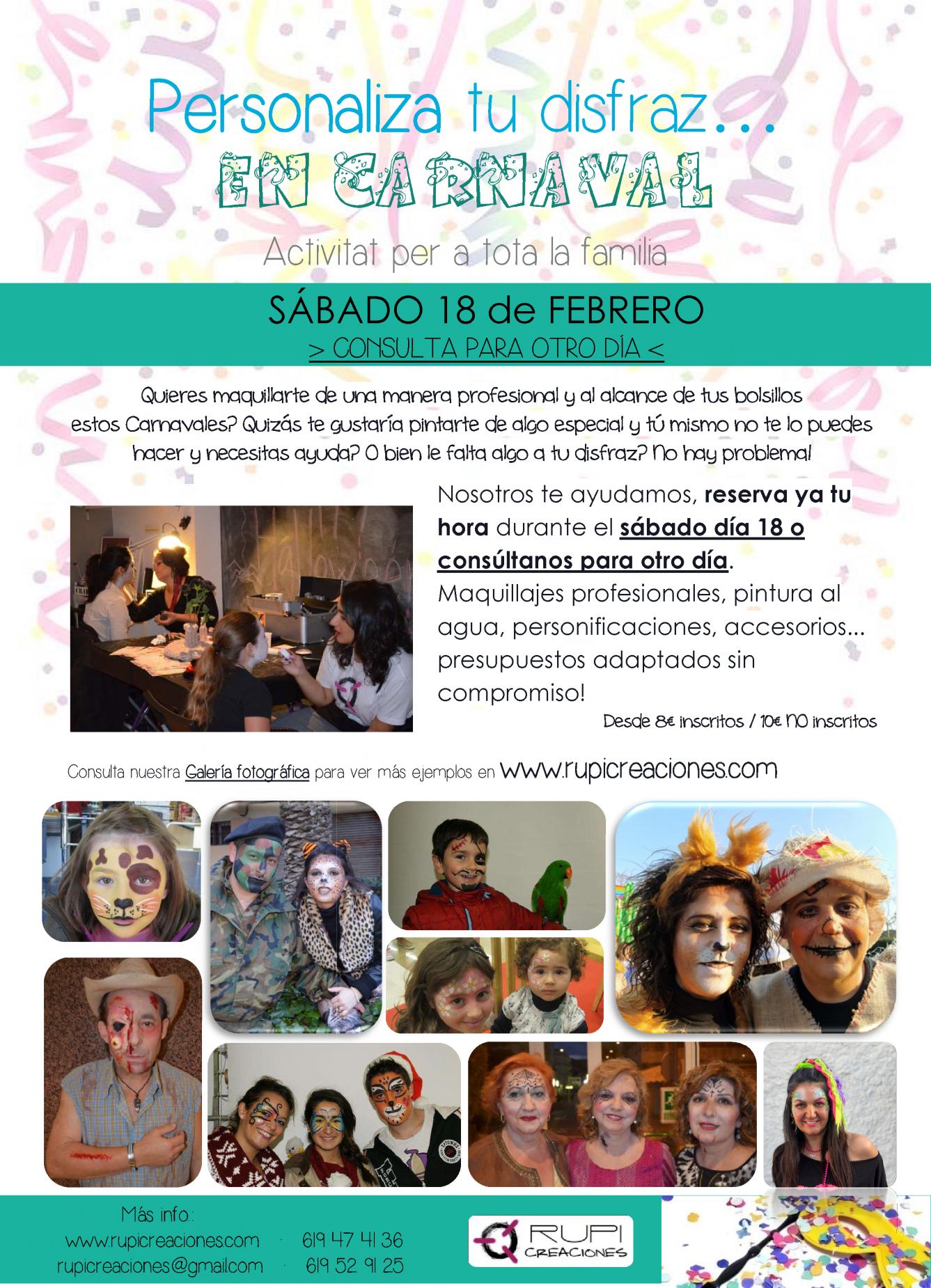 Vols maquillar-te d'una manera professional i a l'abast de les teves butxaques aquests Carnestoltes? Potser t'agradaria pintar-te d'una cosa especial i tu mateix no t'ho pots fer i necessites ajuda? O bé li falta alguna cosa a la teva disfressa? No hi ha problema!