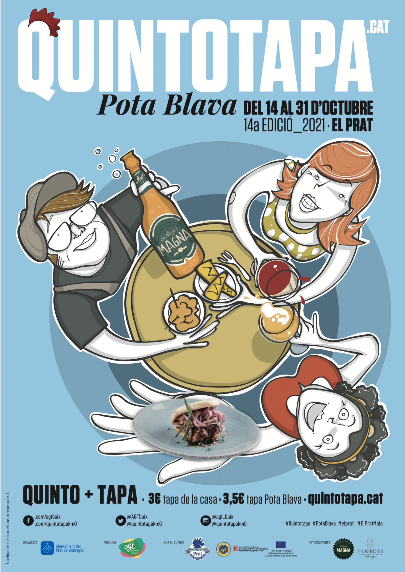 Continua la proposta de la tapa Pota Blava (de 3,5 €) i la tapa de la casa (de 3 €) amb un Quinto Magna, a més de poder gaudir de les propostes amb vins DO Penedès. Aquest any, el QuintoTapa torna amb el sistema de vot on line a quintotapa.cat per escollir les millors tapes de la ruta gastronòmica i el millor cambrer o cambrera. En el seu afany de ser més sostenibles, AGT redueix els elements en paper de la ruta.