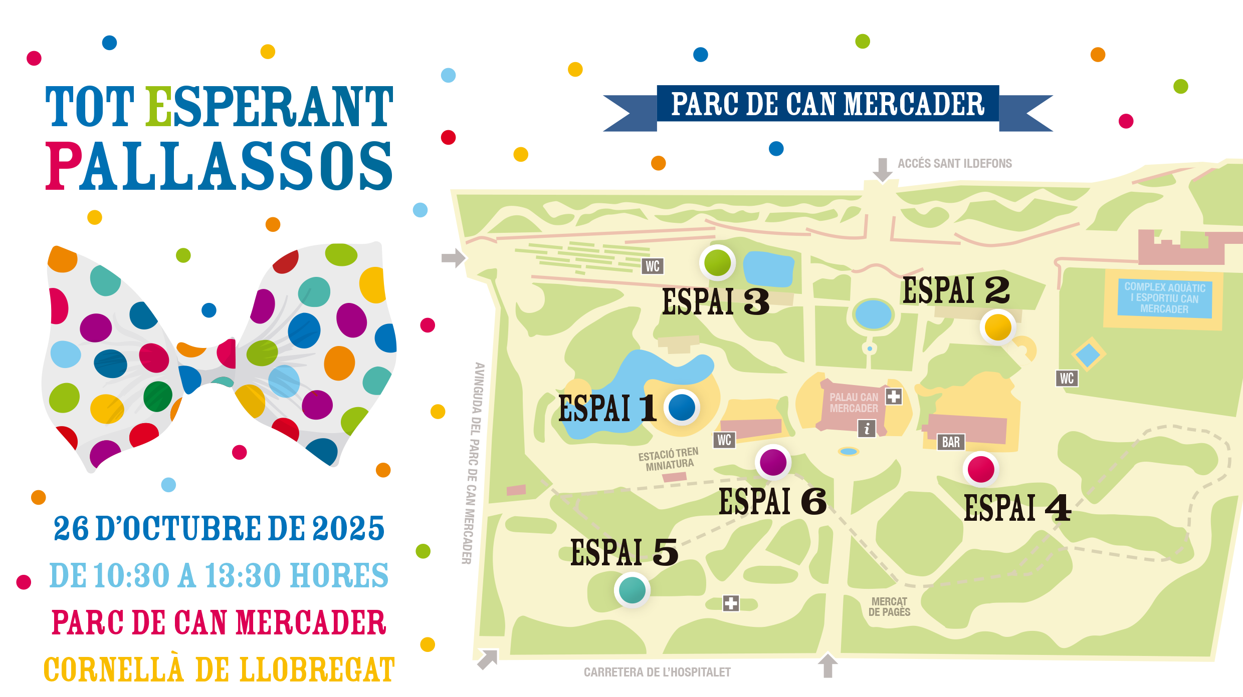 L’espera per a una nova edició del Festival Internacional de Pallassos de Cornellà-Memorial Charlie Rivel, que se celebra els anys parells, és més curta gràcies al festival Tot Esperant Pallassos, una programació relacionada amb el món dels pallassos i les pallasses organitzada per l’Ajuntament de Cornellà. Al voltant del mes d'octubre (dels anys senars), podreu gaudir l'animació i la disbauxa dels pallasos i del circ de carrer AL PARC DE CAN MERCADER.