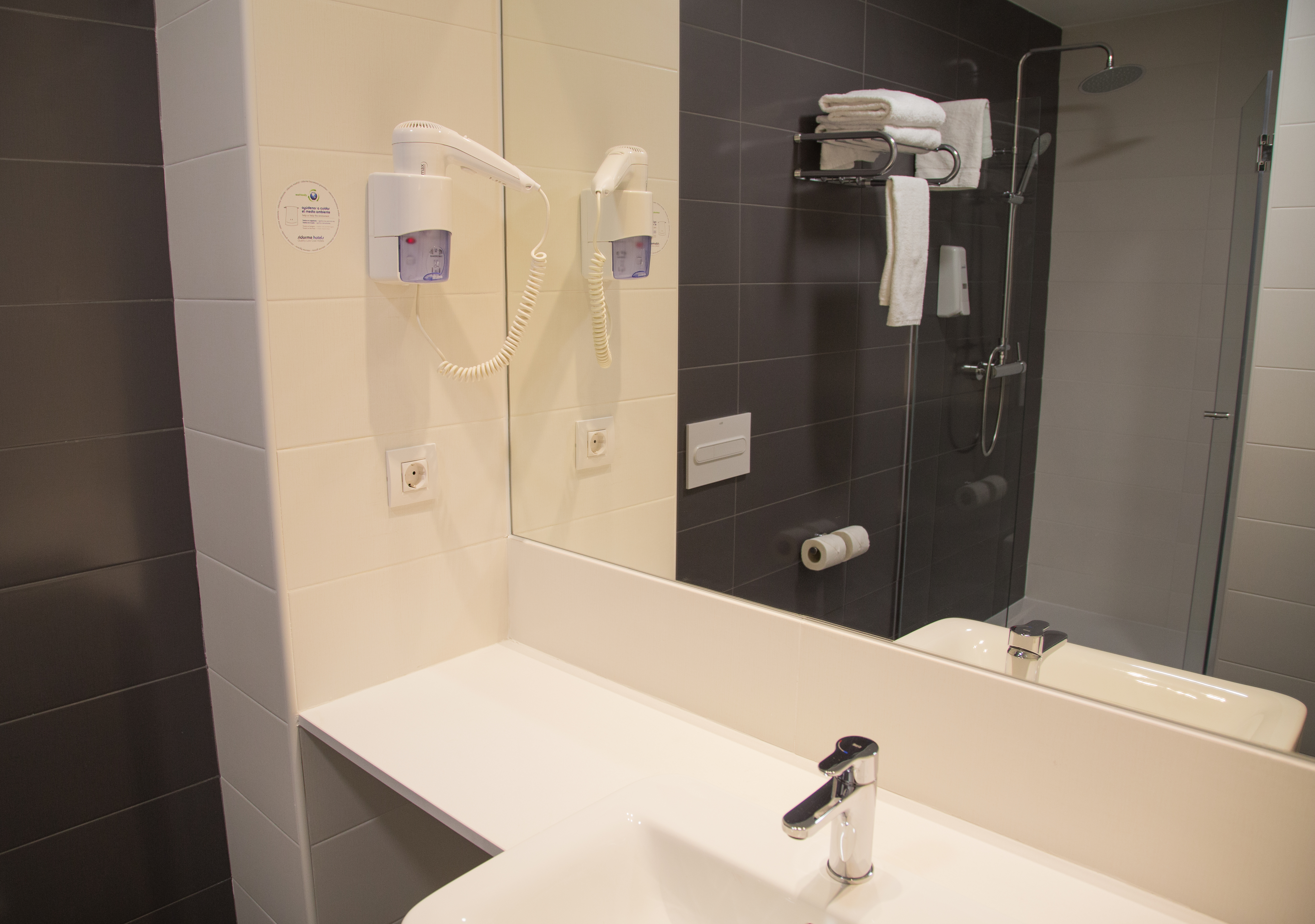 B&B Hotel in Barcelona Viladecans is the perfect place to stay, be it for leisure or a business trip owing to its good location and direct access to Barcelona City centre, ”la Fira Gran Via 2” and “la Fira de Barcelona” in España Square, and Barcelona’s International Airport “El Prat”. The hotel is located next to the C-32 highway and in front of the train station in Viladecans, only 15 minutes away from Sants Station. The main business areas from El Prat, Castelldefels, Gava and Sant Boi are located just a few minutes away. Next to the hotel you will find the Vilamarina Mall. In summer season, due to the proximity to Castelldefels and Gavá beaches, in Sidorme cheap hotel in Viladecans you will find a perfect place to relax after a warm day at the beach or an exhausting day in the city, away from the crowds of Barcelona’s city center. Our hotel has 100 functionally designed rooms facing the exterior, with natural light and completely soundproof. They are fully air conditioned, including cooling and heating systems, and equipped with 24” LED LG TVs and comfortable work desks. All rooms feature wide bathrooms with either a shower cabin or a bathtub, and hairdryers. From our menu you can also choose different mattress thicknesses and pillows in accordance with your personal needs. In addition to the free high-speed Wi-Fi, the cheap Sidome Viladecans hotel offers complimentary coffee and tea. Apart from all the services described above, we have 50 parking spaces with direct access to the hotel lobby.