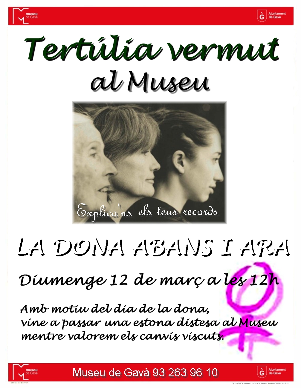 - Tertúlia – vermut al Museu de Gavà. “Amb veu de dona. Les dones abans i ara"