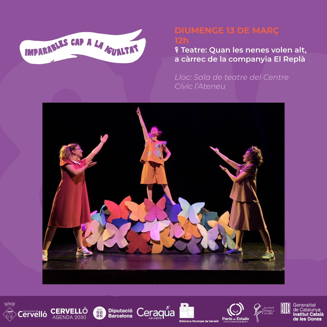 El diumenge 13 de març a les 12 hores, podrem gaudir, a la sala de teatre del Centre Cívic l'Ateneu, de l'obra Quan les nenes volen alt, a càrrec de la companyia teatral El Replà.