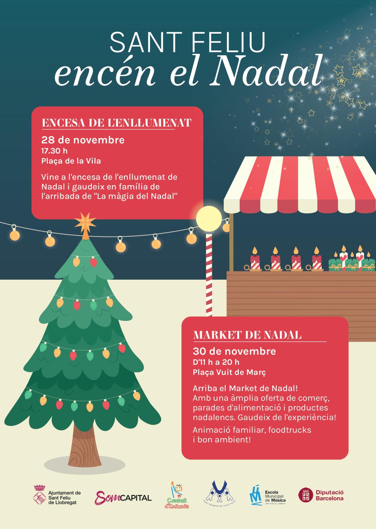 Divendres 28 de novembre, a les 17.30 h, la Plaça de la Vila acollirà l'encesa de l'enllumenat de Nadal, que començarà amb l'espectacle familiar "La màgia del Nadal". L'acte comptarà amb la participació de membres del govern local i de representants del Consell d'Infants i del Consell d'Adolescents, que hi tindran un paper destacat en el moment de prémer el botó d'encesa.