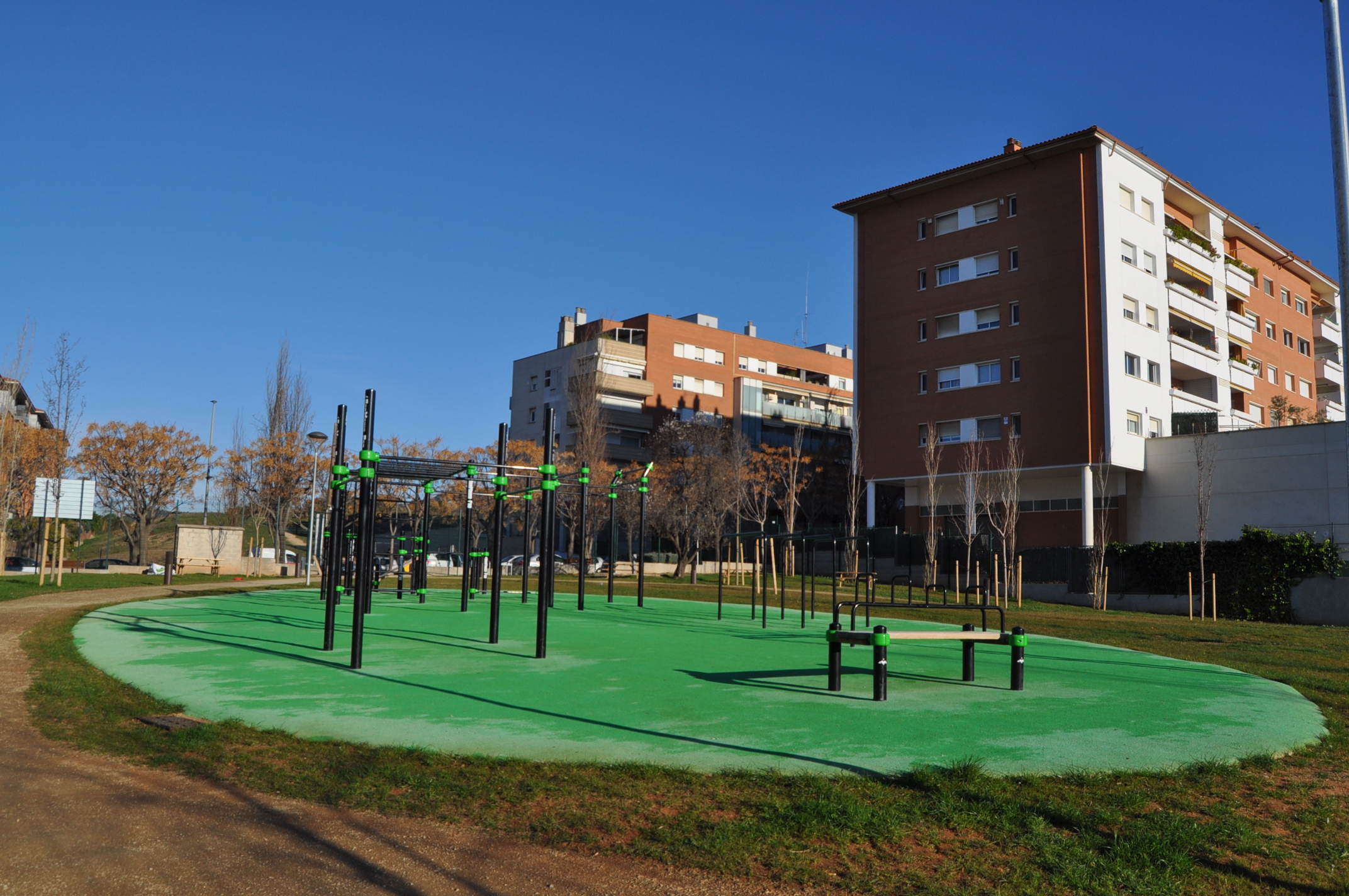 L'espai disposa d'una zona per a la pràctica de parkour (activitat que consisteix en desplaçar-se superant obstacles, servint-se únicament del propi cos), i una àrea amb ponts i altres elements per fer salts i piruetes amb bicicleta. També s'han habilitat camins per fer a peu, corrent o amb bicicleta. A més, s'han instal·lat en una zona d'estada carregadors solars per als aparells de telefonia mòbil.