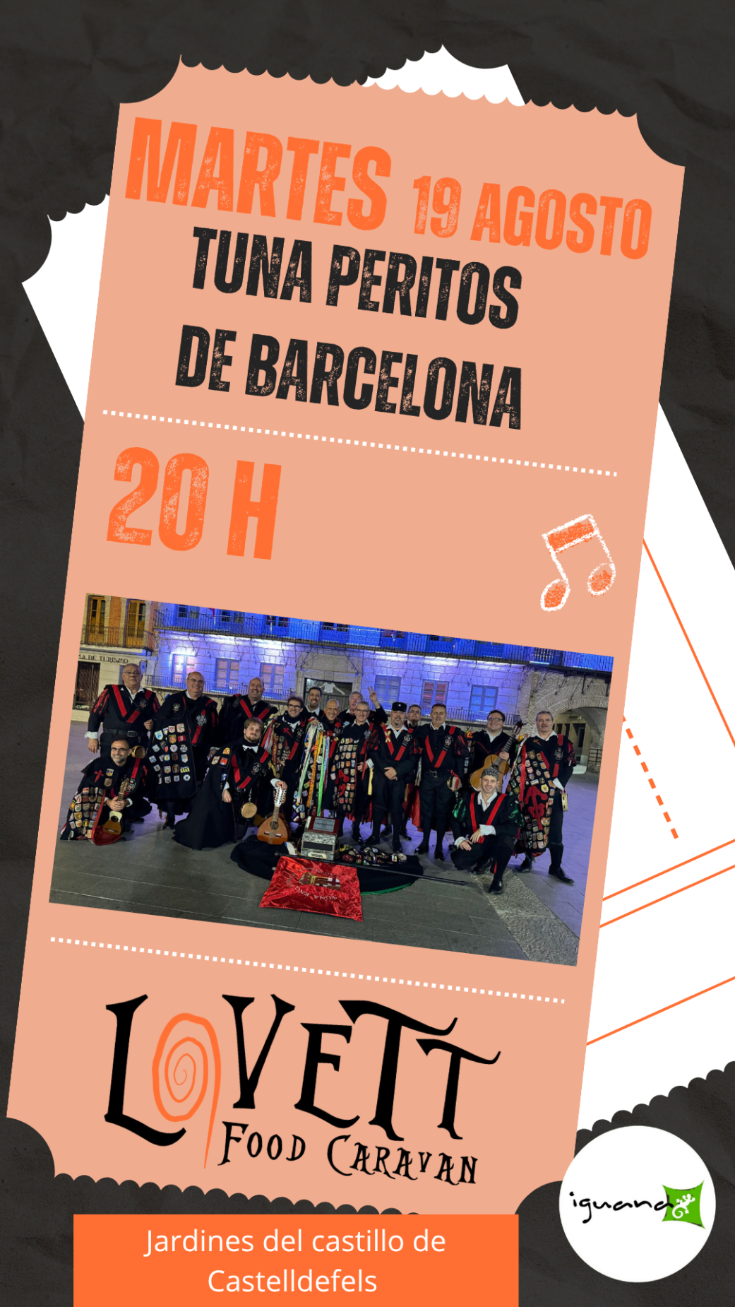 Concert de la TUNA PERITOS de Barcelona a les 20h als jardins del castell de Castelldefels. Entrada gratuïta. Espectacle per a tots els públics.