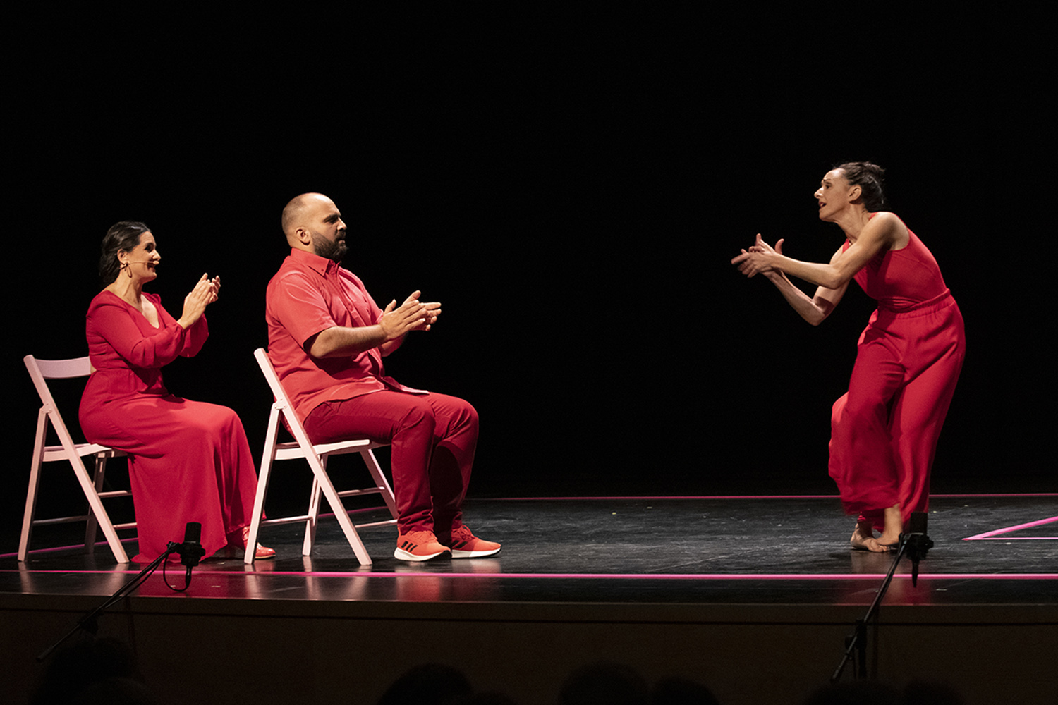 “Per a una festa només calen tres persones: una canta, una altra toca i una altra balla”. Aquesta frase tan popular de Paco de Lucía dona peu al que passa en aquest espectacle, on el cant i el toc entren a El dormitorio i al costat del ball es munta una festa.