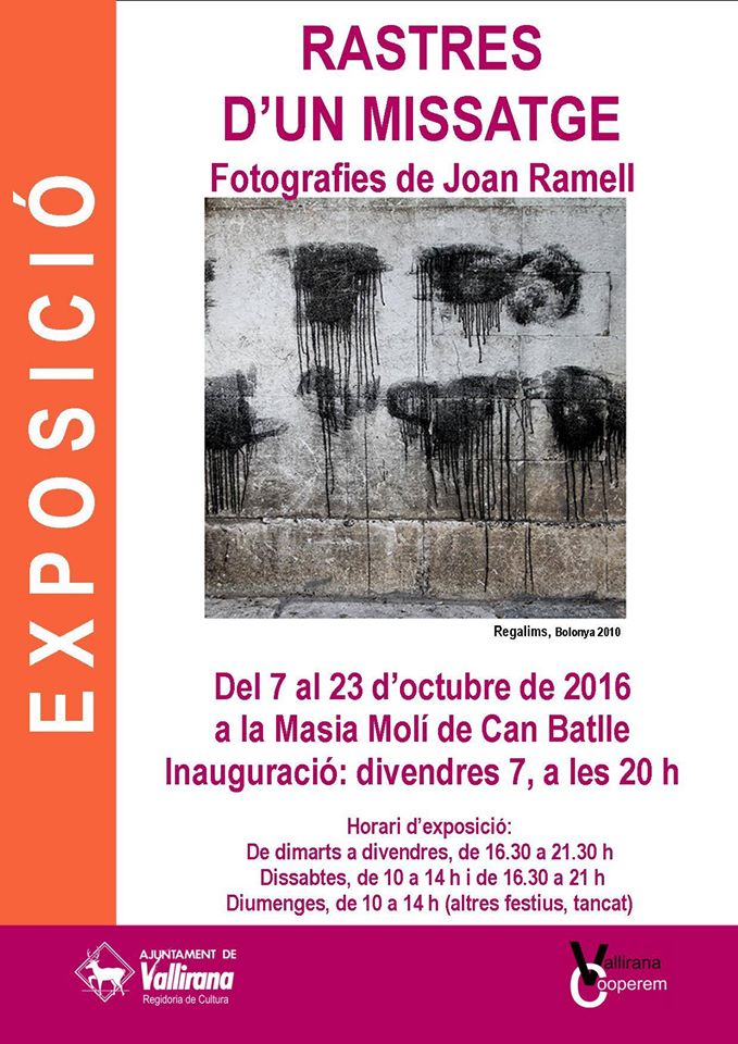 - Exposició fotogràfica “Rastres d’un missatge” a Vallirana