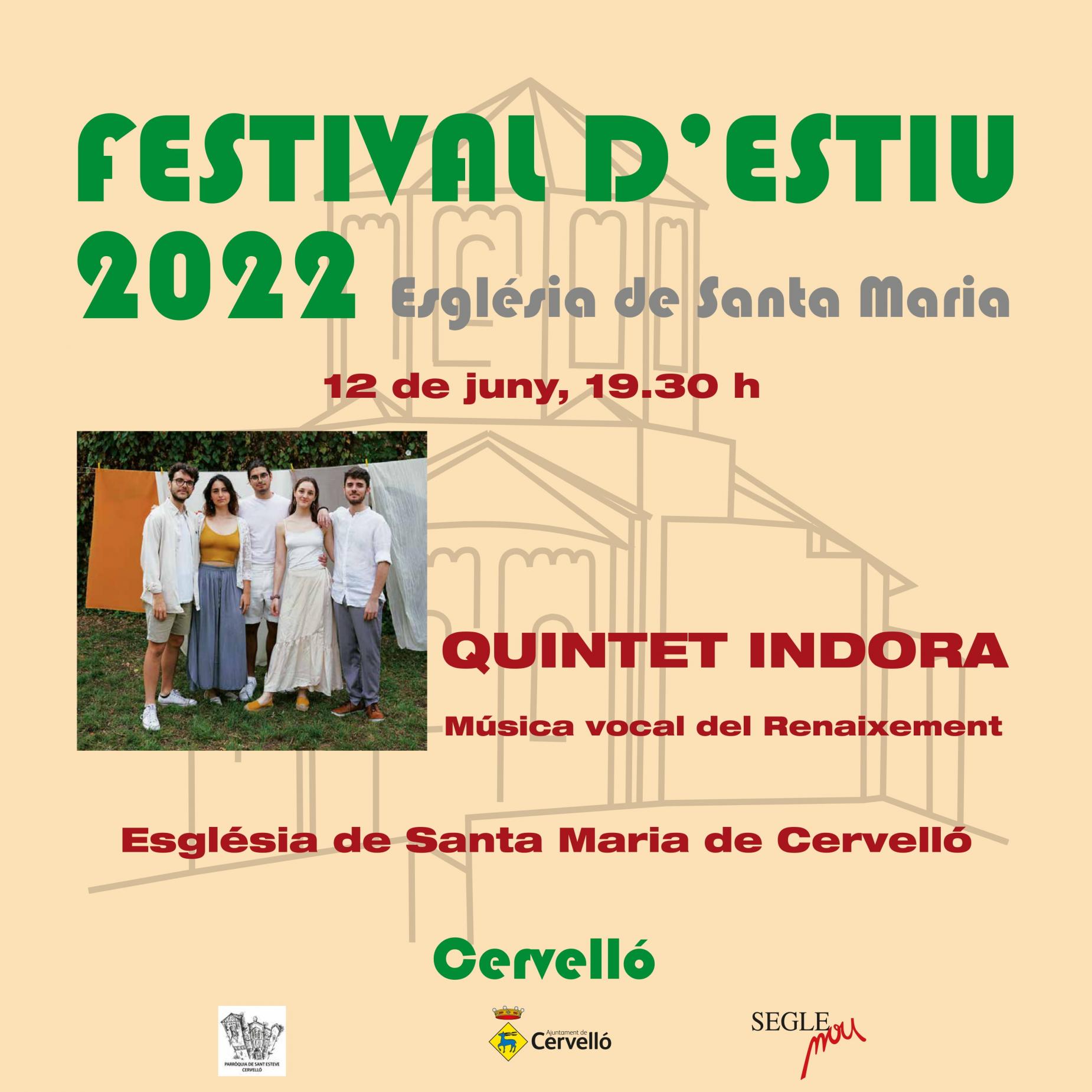 Festival d'estiu Segle Nou, amb la participació del Quintet Indora; formació a capella dedicada a la interpretació de música antiga.