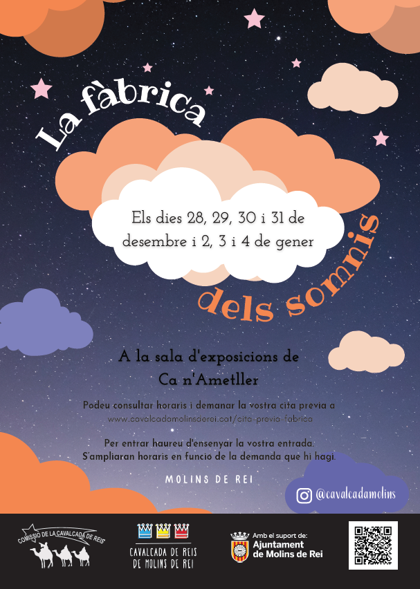 Cal demanar cita prèvia a: https://cavalcadamolinsderei.cat/fabricadelsomnis/