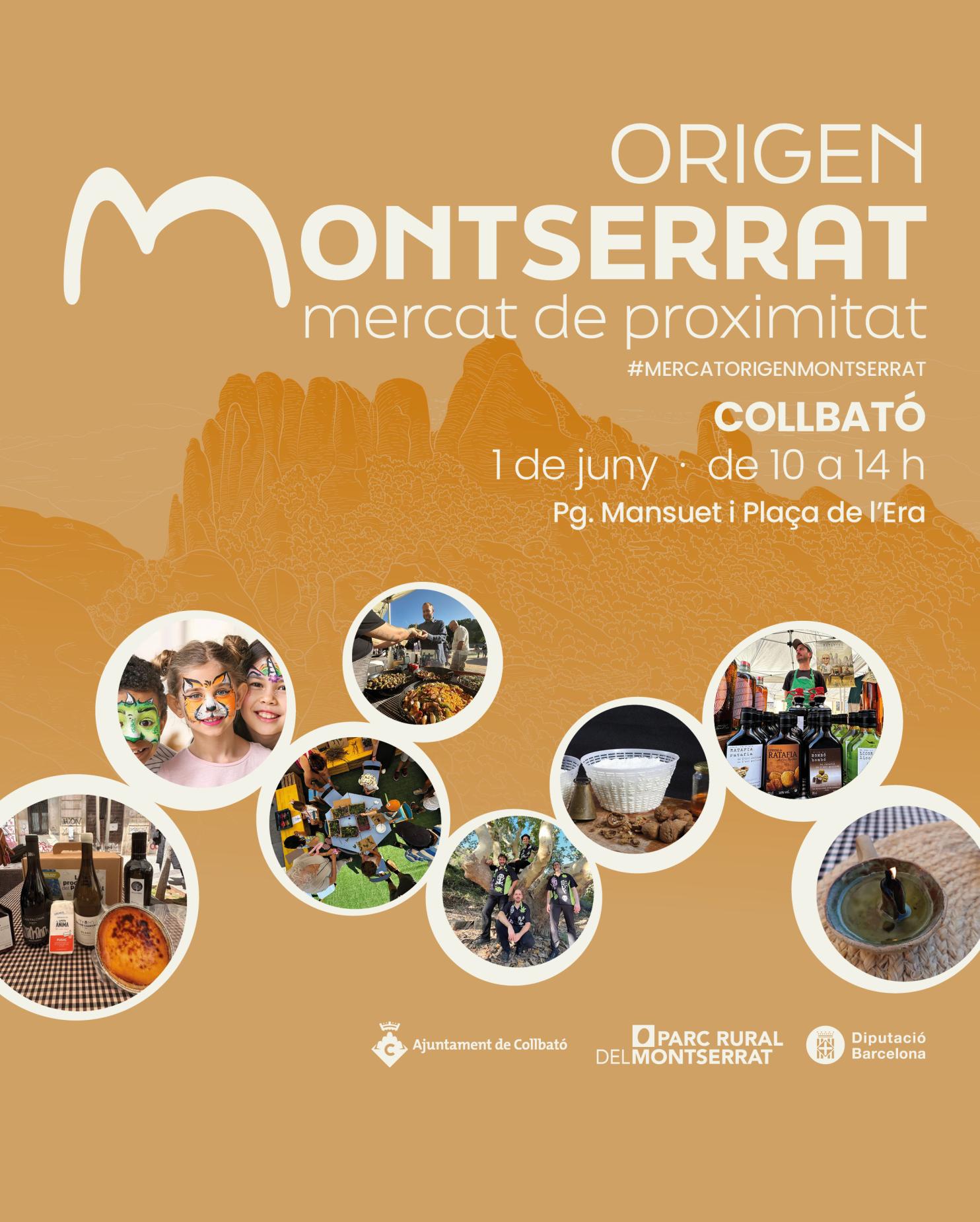 El Mercat Origen Montserrat és una iniciativa conjunta de l’Ajuntament de Collbató, el Parc Rural del Montserrat i la Diputació de Barcelona. La seva itinerància permet que diversos municipis del territori es converteixin en punts de trobada entre productors, artesans i consumidors, fomentant així la cultura local i la sostenibilitat.
