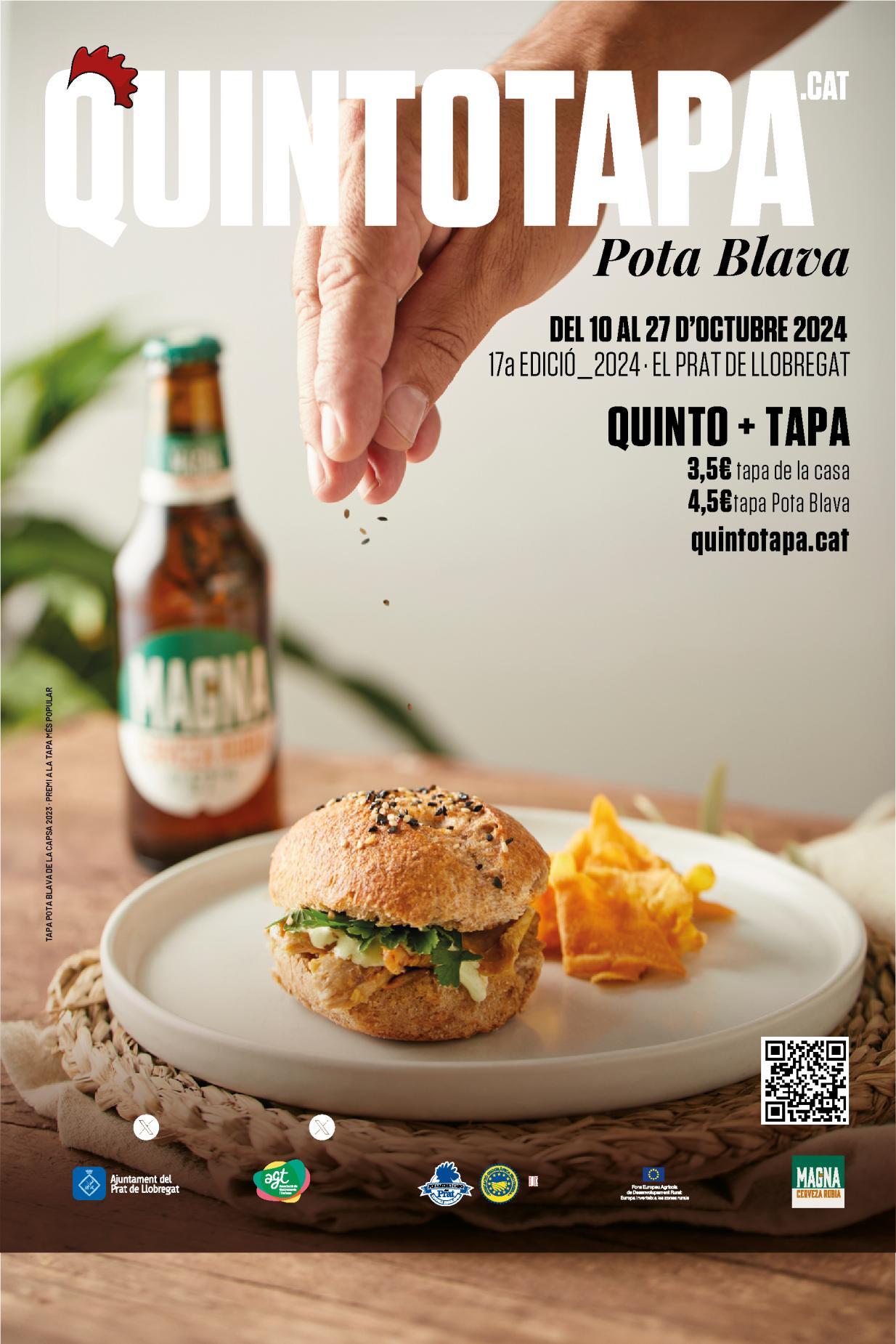 Una nova edició, i ja en són disset! El pollastre Pota Blava tornarà a ser el protagonista gastronòmic de la tardor i el QuintoTapa serà la seva entrada per la porta gran. Serà l’ingredient protagonista de la restauració del Prat del 10 al 27 d'octubre, amb una nova edició del consolidat esdeveniment. Aquesta au recorrerà, en forma de tapa, amb més de 25 bars i restaurants participants del Prat de Llobregat, donant rellevància a un producte de primera del Parc Agrari del Baix Llobregat. Els restauradors i restauradores han creat un bon grapat d’atractives propostes gastronòmiques per a l’edició del 2024.