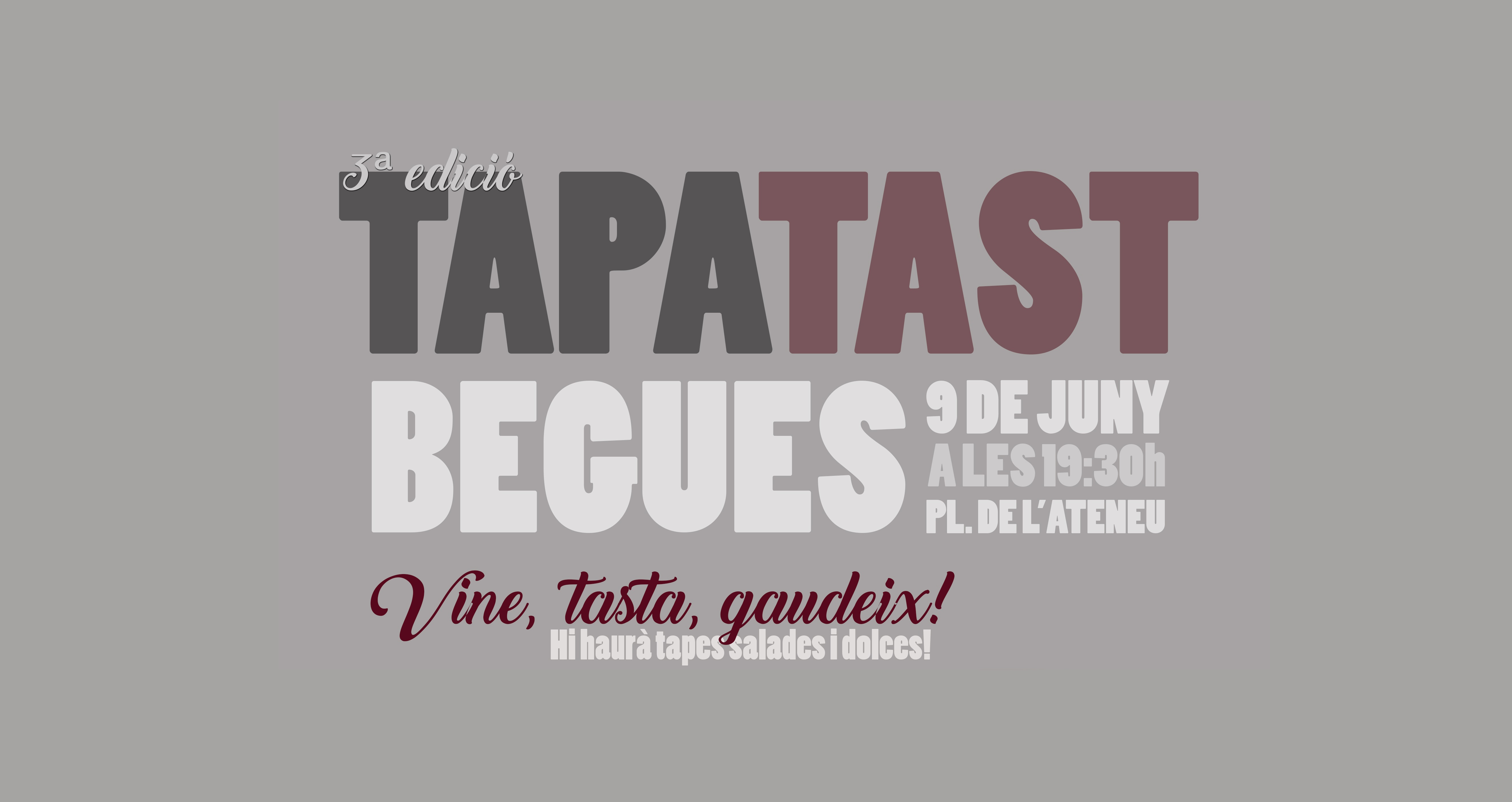Es tracta de la III Edició del Tapatast que tindrà lloc el proper dissabte 9 de juny a les 19.30 h a la plaça de l’Ateneu.