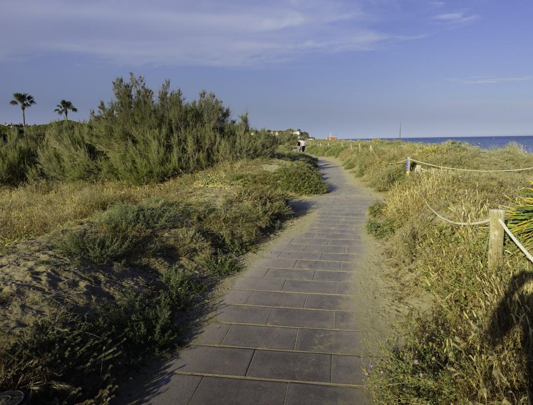 Ara per una clapa de pineda alterada ens dirigim cap al Castell de Castelldefels. Tot seguit baixarem creuant el poble cap a la plana on ja ha desaparegut qualsevol testimoni agrícola d'aquest racó de delta, llevat d'alguns pins pinyoners. Envoltats per la zona residencial i passades les C-32 i C-31 arribem al Parc del Mar a la Platja de la Pineda.
