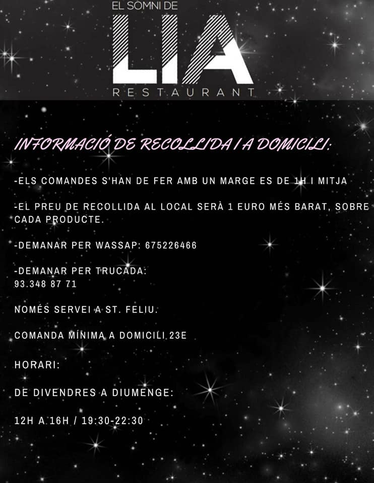 Take away i Delivery al Somni de Lia a Sant Feliu de Llobregat