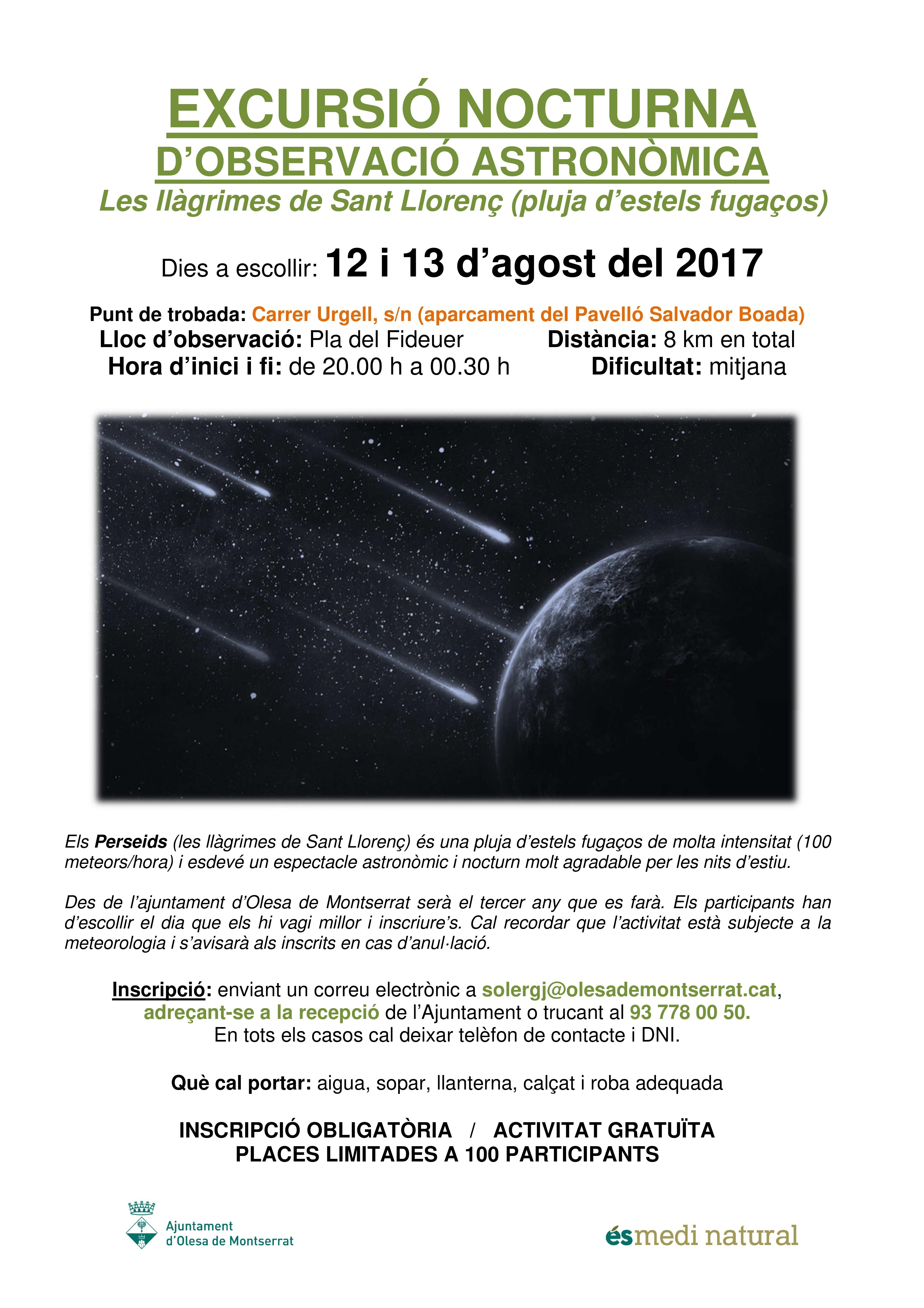 - Excursió nocturna i astronòmica a Olesa de Montserrat